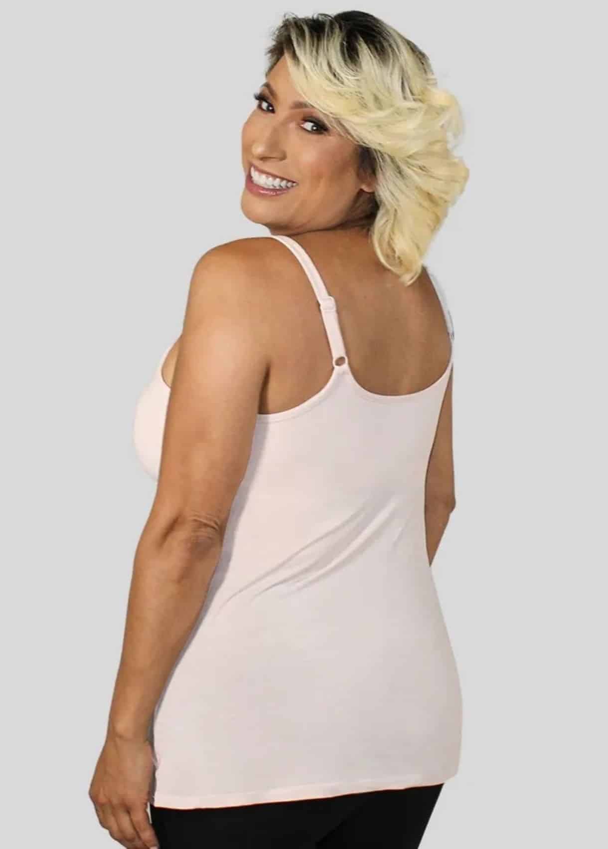 Created with a scooped neckline and fully adjustable double straps that provide support and style. The Kalena Camisole sits nicely below hips to prevent rising and fits to flatter all body types. No bra needed- This pocketed camisole is designed for full support, with an integrated shelf bra to support breastforms and/or shapers.