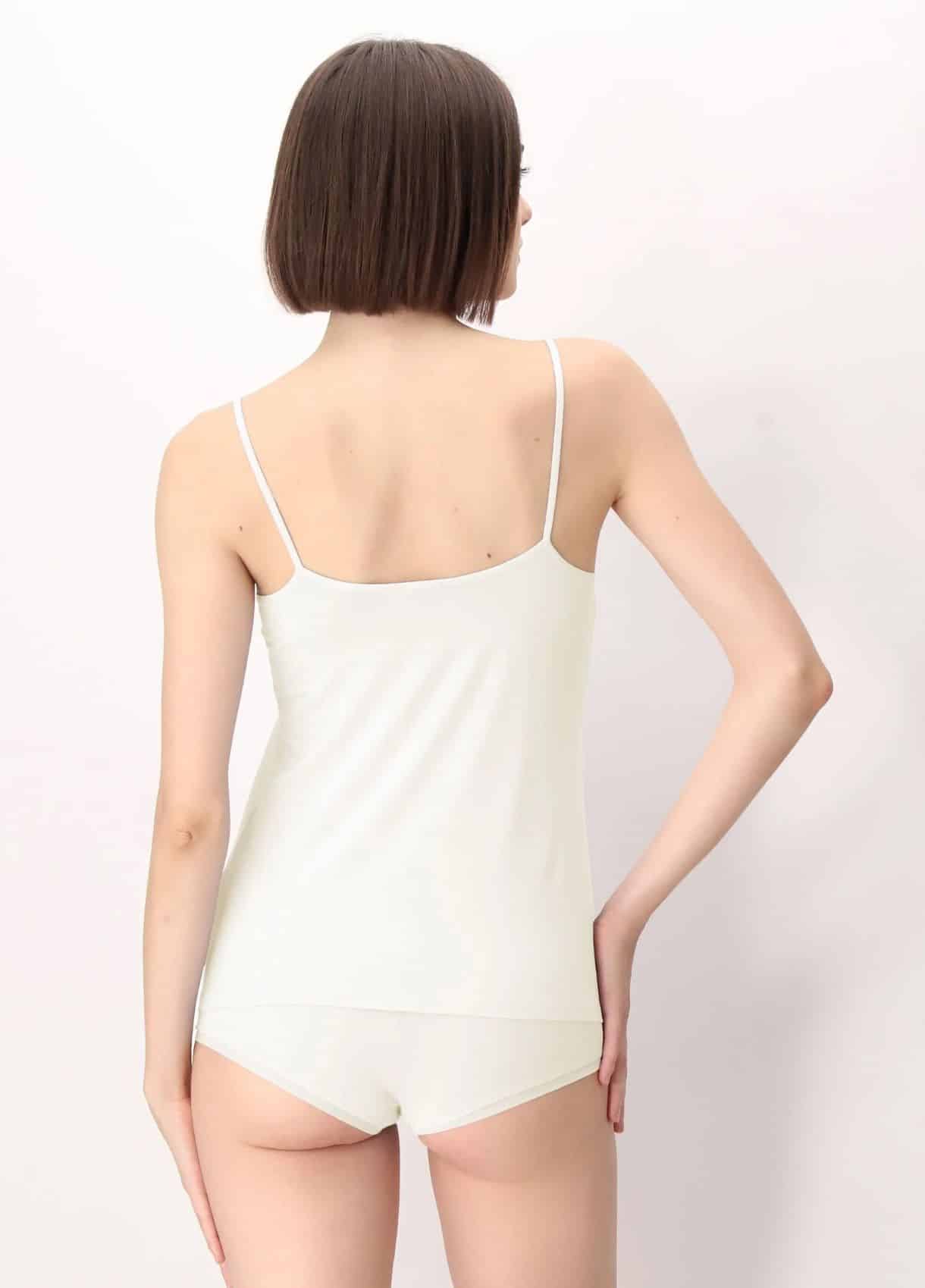 • Spaghetti strap singlet with light mesh edging on front neck edge